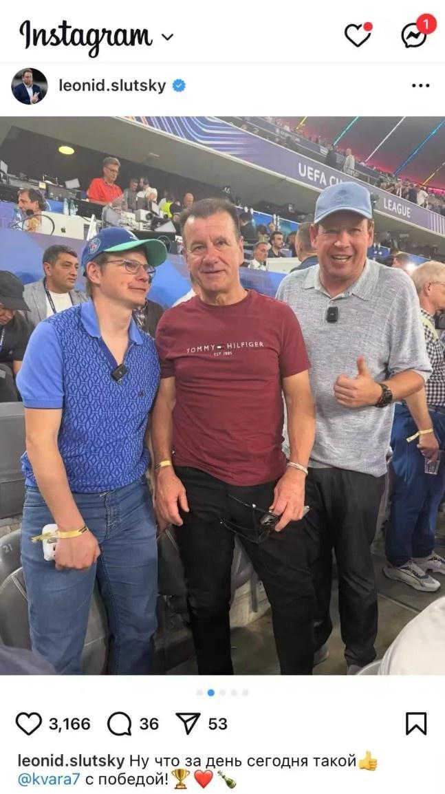 斯卢茨基现场观战欧冠决赛,见证昔日弟子克瓦拉茨赫利亚夺冠